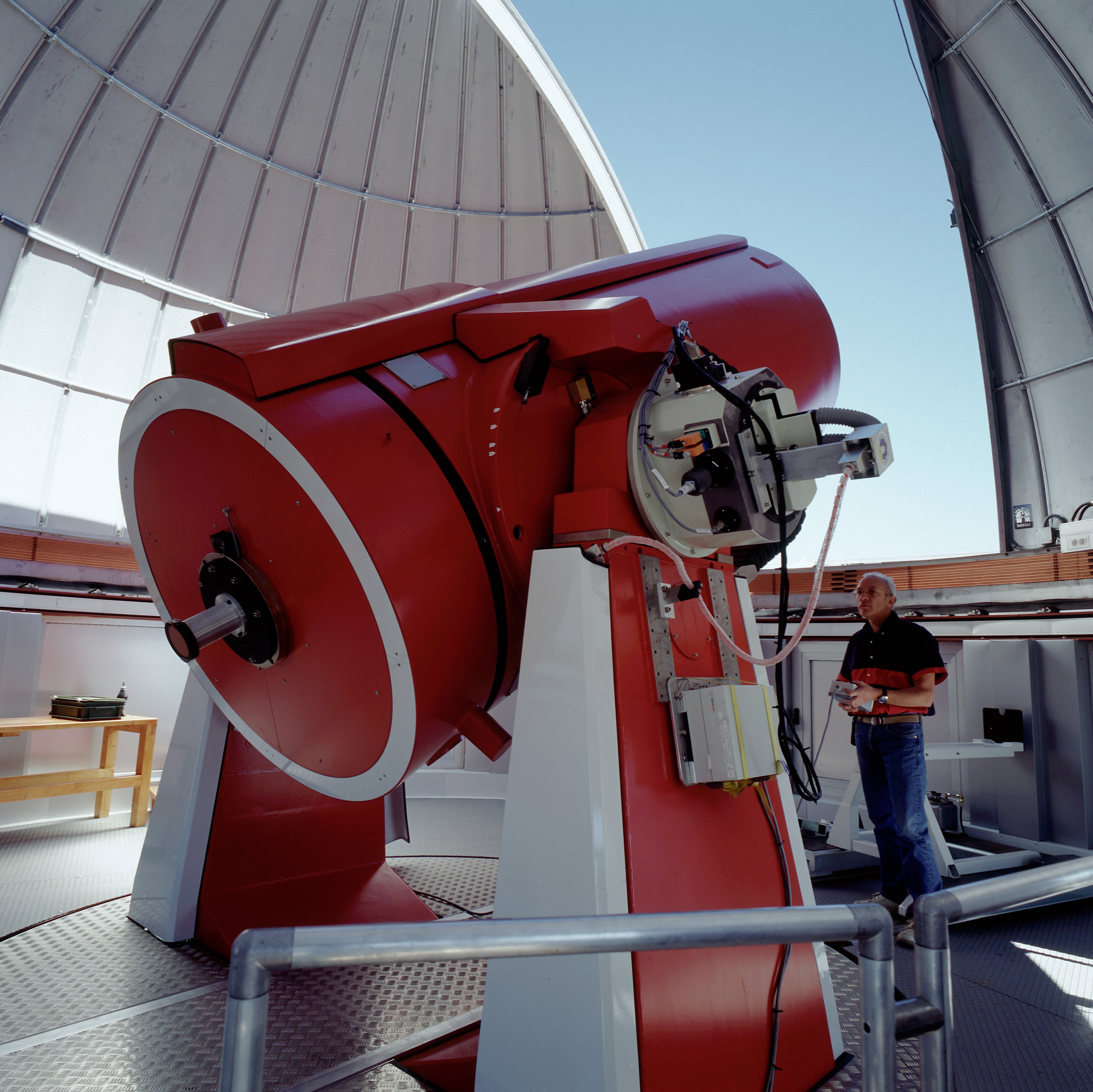 The Swiss 1.2-m Leonhard Euler Telescope in its dome at La Silla. This telescope is named after the Swiss mathematician Leonhard Euler (1707 - 1783).
